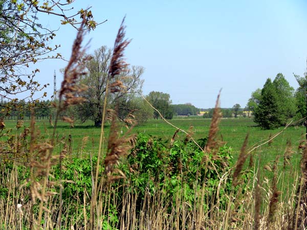 Leider sind auf vielen Karten selten die kleinen, sonst kaum genutzten aber für Wanderer und Spaziergänger gut geeigneten Wege eingezeichnet. Mitunter gibt es ‚Plattenstraßen‘ durch die Felder, alte Poststraßen oder auch unbefestigte Wege. Letztere sind allerdings nicht verlässlich verfügbar, werden als Weide mit eingezäunt oder sogar umgepflügt und in das nebenliegende Feld integriert. So ist der auf mehreren Karten verzeichnete und Jahrzehnte genutzte Weg nordwestlich von Vehlin, entlang der Karthane, nicht mehr vorhanden. Ebenso fehlt ein Stück des westlichen Rundweges (Bild links) zwischen den Karthanebrücken bzw. ist dieses abgesperrt. Schade – so gehen dem geneigten Wanderer und Radfahrer immer mehr der schon wenigen Wege und somit auch wohltuender Zeitvertreib und reizvolle Einblicke in die Landschaft verloren. Als kleinen Trost noch zwei Bilder entlang des (leider unterbrochenen) westlichen Rundweges:
