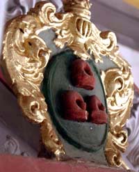 Unter der Empore sieht man eines der beiden Patronatsgestühle. Auf dem nächsten Bild das zweite (ganz links).